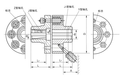 TL型弹性套柱联轴器标记示例: TL3弹性套柱销联轴器 主动端:Z型轴孔、C型键槽,dz=16mm,L=30mm 从动端:J型轴孔,B型键槽,d2=18mm,L=42mm TL3联轴器(ZC16×30/JB18×42)GB4323-84 |