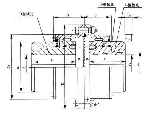 GIICLD型鼓形齿式联轴器基本参数和主要尺寸