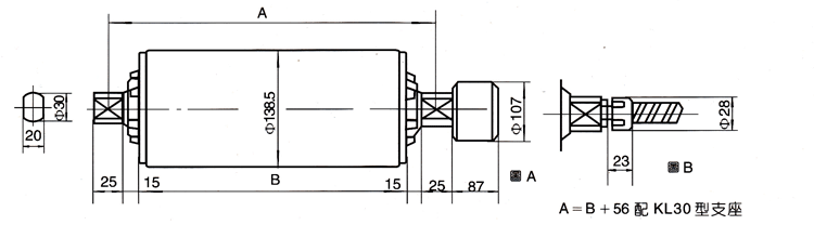 用户如订购带有逆止器、电磁制动器、F级和H级绝缘、滚筒包胶的电动滚筒请另注明。标准筒长为50mm一档。