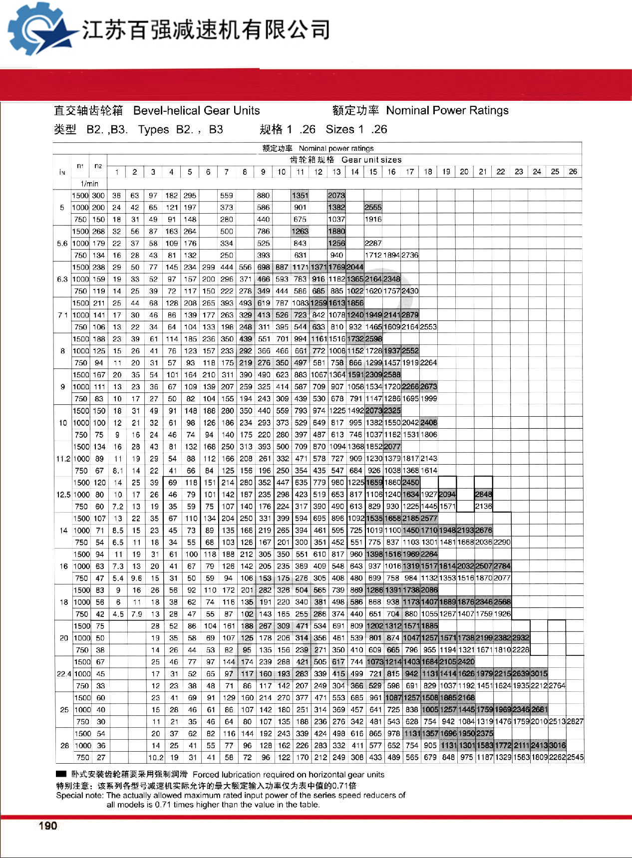 7、 H、B系列产品有3~26型规格,减速传动级数有1~4级,速比1.25~450。